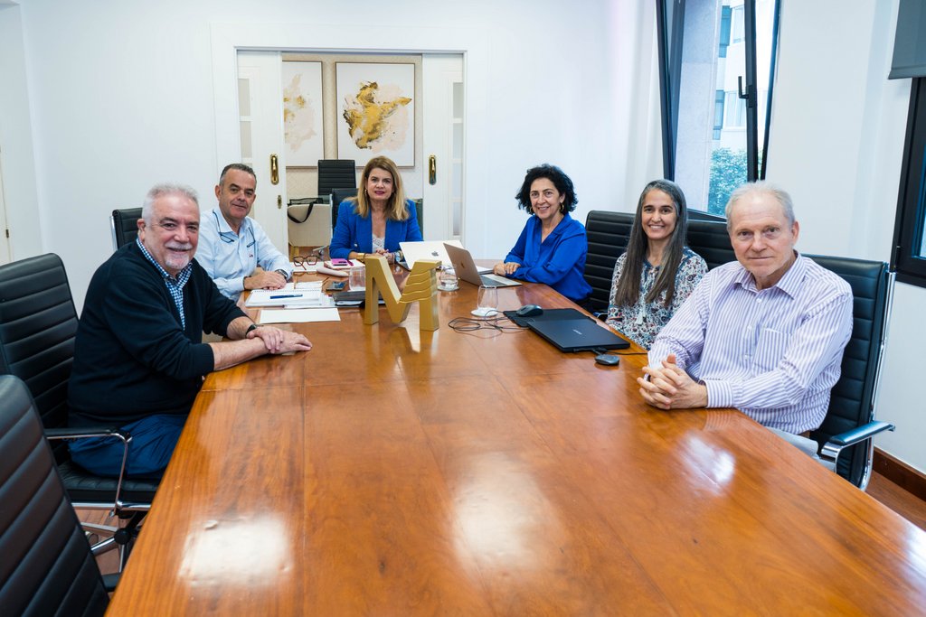 Participaron en la reunión por parte del Colegio: Elizabeth Hernández, presidenta; Nicolás Santana, secretario general; Marta León, vicesecretaria; por porta del equipo PAIME del Colegio: Carmelo Mendoza, director del programa; Iraya Rodríguez, psicóloga; y Gustavo Winter, psiquiatra.