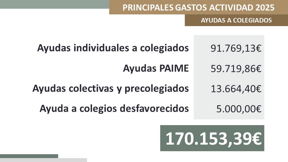 - 170.000€ para ayudas a colegiados en 2026